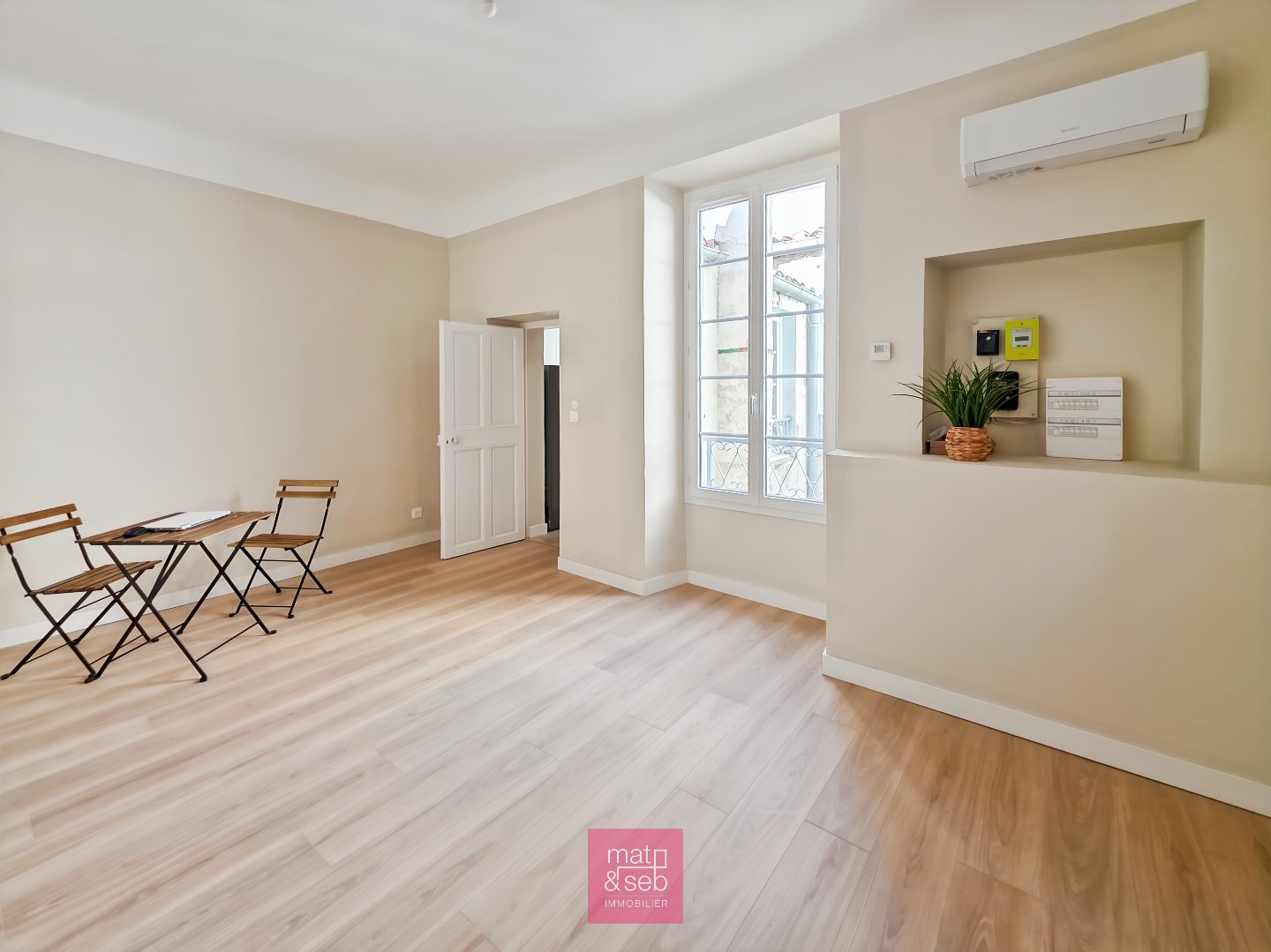 Un écrin urbain de 67 m² au 2ème étage d'un bel immeuble ancien. Deux chambres, rénovation contemporaine, climatisation et tranquillité rare à deux pas de la Place de l'Horloge. Syndic bénévole et esprit “clé en main” : la vie citadine devient simple et élégante. Surface CARREZ : 66.99 m²