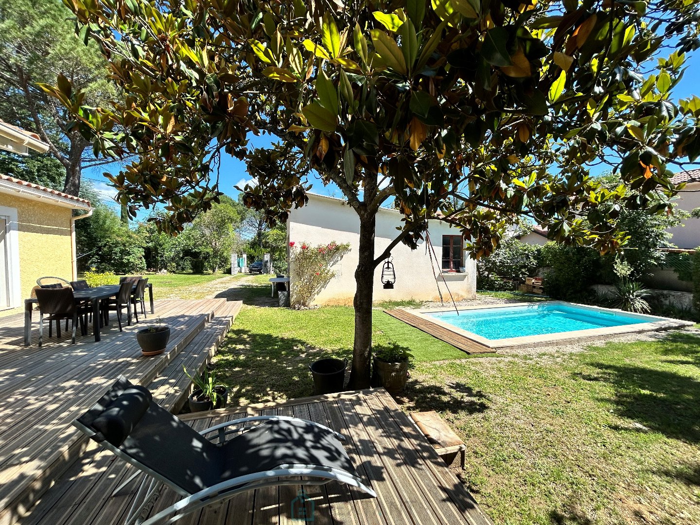Très jolie villa d'environ 110m² sise sur un terrain arboré et clôturé d'environ 1150m², proche des commerces et services de proximité tout en étant au calme. Le rez de jardin comprend un grand espace de vie d'environ 56m² composé d'une cuisine semi ouverte, lumineuse et spacieuse donnant sur un salon-salle à manger avec vue sur la terrasse, le jardin et la piscine de 6 3. Le rez de chaussée est également composé d'une chambre avec placard intégré, d'une salle d'eau avec coin buanderie et de toilettes séparées. A l'étage, possibilité d'aménager 2 chambres, 1 coin bureau et une salle d'eau avec WC. Des travaux sont à prévoir sur ce niveau. Un grand garage d'environ 28m² peut accueillir un bel atelier ou être transformé, à terme, en dépendance. Ce bien est raccordé au tout à l'égout. Ecoles à proximité. Terrain constructible. A visiter sans tarder! DPE Classe énergie D Emissions gaz à effet de serre B Honoraires TTC charge vendeur Agent commercial Sextant France - Vani Mercier agent basé à ALES - 06 20 91 32 44 - Plus d'informations sur www.sextantfrance.fr réf. 23681