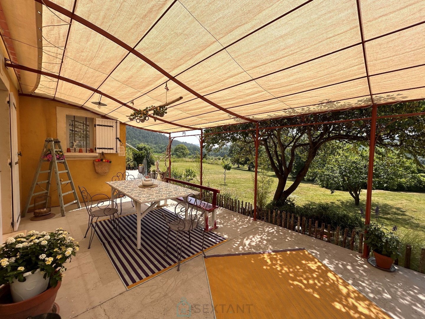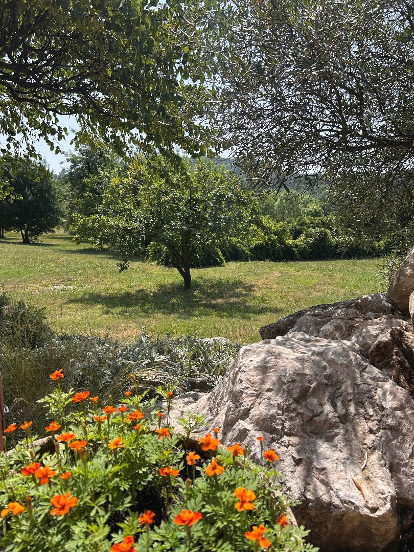 A seulement 25 minutes d'Uzès ou de Barjac, au sein d'un hameau paisible de Goudargues, découvrez cette maison pleine de charme d'environ 117m², idéale pour une résidence principale ou une villégiature propice au ressourcement. Dès l'entrée, vous serez séduit par une décoration soignée et une atmosphère empreinte de poésie conférant au lieu une véritable âme. Le vaste salon-salle à manger de 50m², baigné de lumière, invite à la convivialité autour de la cheminée équipée d'un poële à bois. Deux portes fenêtres vous donne un accès direct sur la terrasse avec vue entièrement dégagée sur le jardin. La cuisine fonctionnelle de 10m², attenante au séjour, offre également un accès direct à la terrasse, parfaite pour vos moments de détente. Un cellier avec coin buanderie apporte un espace de rangement complémentaire. L'espace nuit comprend une salle d'eau, des toilettes séparées, une première chambre de 9m² avec placards intégrés, une seconde chambre spacieuse de 16m² bénéficiant également d'un grand placard avec un point d'eau. Le rez-de-chaussée dispose en complément d'une véranda lumineuse de 15m², offrant la possibilité d'aménagement en chambre supplémentaire, bureau ou autre selon vos besoins. Les combles aménagés d'environ 16m² peuvent parfaitement convenir en chambre d'appoint. Les extérieurs ne sont pas en reste avec un garage de 21m², une cave, un poulailler ainsi qu'un coin potager agrémenté de cuves de récupération d'eau de pluie. Le terrain de plus de 8200m², sans vis à vis, offre au regard un environnement préservé exceptionnel. Il est, par ailleurs, pour partie constructible, avec accès indépendant, PC déjà accordé ! L'idéal pour accueillir famille et amis (ies) ou créer des chambres d'hôtes ou gîte. Un bien rare offrant calme, cachet et potentiel, à visiter sans tarder ! Videos à la demande Prix TTC et Honoraires à charge vendeur TTC Agent commercial Sextant France - Vani Mercier agent basé à ALES - 06 20 91 32 44 - Plus d'informations sur www.sextantfrance.fr réf. 25596