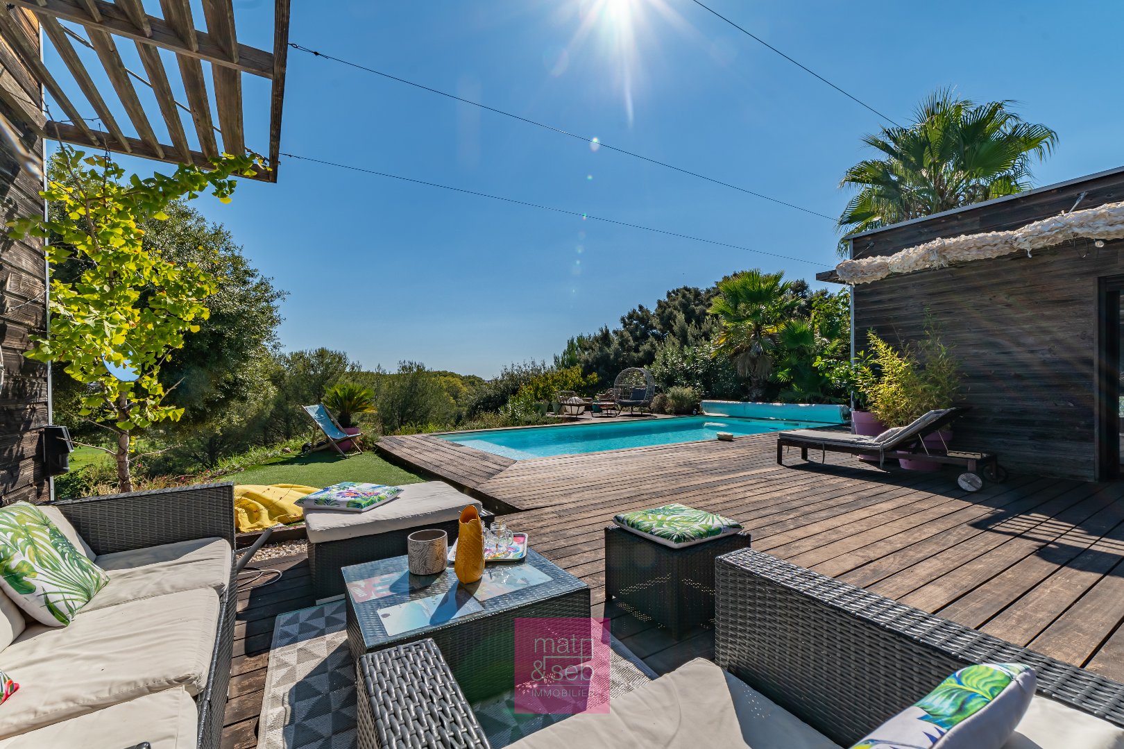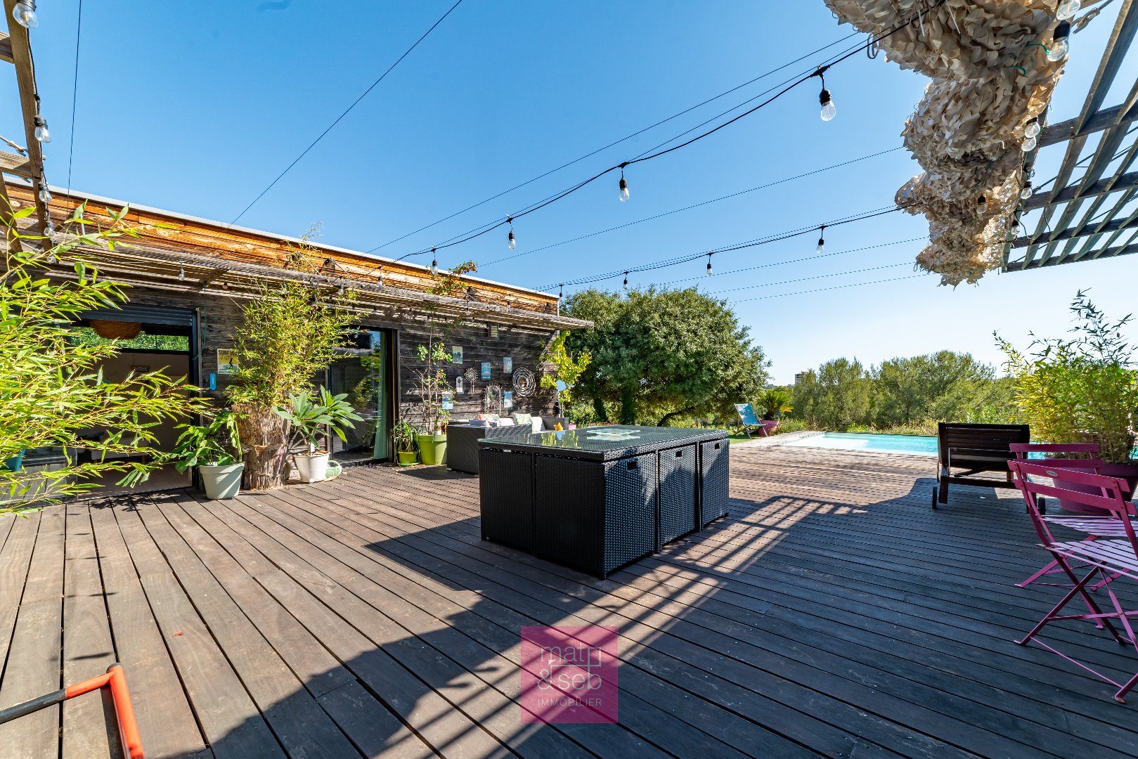 Perchée face au green, cette maison de 160 m² baigne dans la lumière et respire la convivialité. Les espaces s'ouvrent par de grandes baies sur l'extérieur, invitant à vivre dehors toute l'année. Les espaces de vie s'étirent vers une terrasse généreuse menant jusqu'à la piscine. 5 chambres en totalité, un havre éco-responsable à l'esprit simple et élégant où tout semble couler de source !