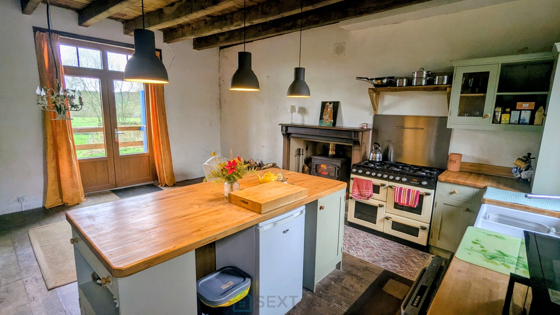 Au cœur de la campagne de Persquen, dans un environnement calme, découvrez cette maison de caractère de 5 pièces – 134 m², avec grande grange en pierres et terrain attenant de 4 220 m², parfait pour un projet de permaculture, potager autosuffisant ou vie proche de la nature. La propriété bénéficie d'une exposition plein sud, d'une vue dégagée, et d'un seul voisin à l'arrière. Rez-de-chaussée surélevé : Cuisine ouverte sur salle à manger (env. 32 m²) avec poêle à bois Salon/séjour lumineux d'environ 34m² avec poêle à bois et bel escalier en fer forgé donnant accès au sous-sol À l'étage : Deux chambres, dont une avec salle d'eau et WC privatifs Seconde salle d'eau avec WC Sous-sol : Grand sous-sol séparé en deux pièces avec 2 entrées Terrasse en bois surélevé : accès par la cuisine Dépendances : Grange en pierres attenante de plus de 90 m², idéale pour stockage, atelier ou projet de rénovation 2 x ruines ( murs en pierre existants) Informations complémentaires : Travaux d'isolation à prévoir Menuiseries remplacées en 2023 Fosse septique aux normes Honoraires : 5,52 % TTC à la charge de l'acquéreur Prix hors honoraires d'agence : 125 000 € Agent commercial Sextant France - Samantha Ellen Smith agent basé à CAMORS - 06 44 75 32 79 - Plus d'informations sur www.sextantfrance.fr réf. 26809 Sextant France - Samantha Ellen Smith agent basé à CAMORS - 06 44 75 32 79 - Plus d'informations sur www.sextantfrance.fr réf. 26809