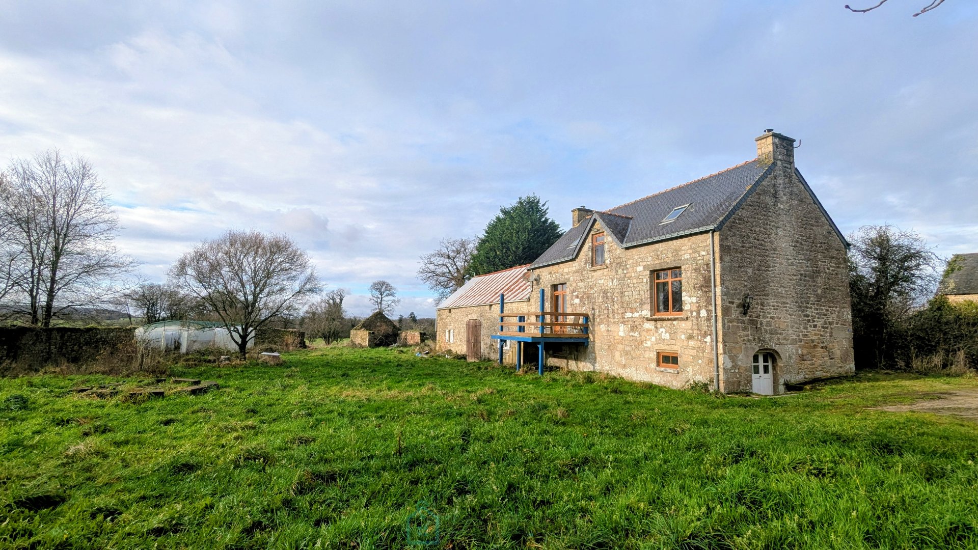 Au cœur de la campagne de Persquen, dans un environnement calme, découvrez cette maison de caractère de 5 pièces – 134 m², avec grande grange en pierres et terrain attenant de 4 220 m², parfait pour un projet de permaculture, potager autosuffisant ou vie proche de la nature. La propriété bénéficie d'une exposition plein sud, d'une vue dégagée, et d'un seul voisin à l'arrière. Rez-de-chaussée surélevé : Cuisine ouverte sur salle à manger (env. 32 m²) avec poêle à bois Salon/séjour lumineux d'environ 34m² avec poêle à bois et bel escalier en fer forgé donnant accès au sous-sol À l'étage : Deux chambres, dont une avec salle d'eau et WC privatifs Seconde salle d'eau avec WC Sous-sol : Grand sous-sol séparé en deux pièces avec 2 entrées Terrasse en bois surélevé : accès par la cuisine Dépendances : Grange en pierres attenante de plus de 90 m², idéale pour stockage, atelier ou projet de rénovation 2 x ruines ( murs en pierre existants) Informations complémentaires : Travaux d'isolation à prévoir Menuiseries remplacées en 2023 Fosse septique aux normes Honoraires : 5,52 % TTC à la charge de l'acquéreur Prix hors honoraires d'agence : 125 000 € Agent commercial Sextant France - Samantha Ellen Smith agent basé à CAMORS - 06 44 75 32 79 - Plus d'informations sur www.sextantfrance.fr réf. 26809 Sextant France - Samantha Ellen Smith agent basé à CAMORS - 06 44 75 32 79 - Plus d'informations sur www.sextantfrance.fr réf. 26809