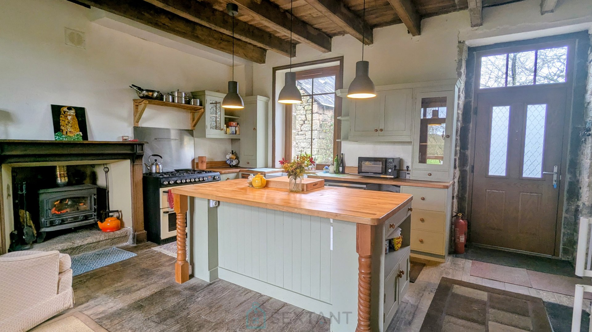 Au cœur de la campagne de Persquen, dans un environnement calme, découvrez cette maison de caractère de 5 pièces – 134 m², avec grande grange en pierres et terrain attenant de 4 220 m², parfait pour un projet de permaculture, potager autosuffisant ou vie proche de la nature. La propriété bénéficie d'une exposition plein sud, d'une vue dégagée, et d'un seul voisin à l'arrière. Rez-de-chaussée surélevé : Cuisine ouverte sur salle à manger (env. 32 m²) avec poêle à bois Salon/séjour lumineux d'environ 34m² avec poêle à bois et bel escalier en fer forgé donnant accès au sous-sol À l'étage : Deux chambres, dont une avec salle d'eau et WC privatifs Seconde salle d'eau avec WC Sous-sol : Grand sous-sol séparé en deux pièces avec 2 entrées Terrasse en bois surélevé : accès par la cuisine Dépendances : Grange en pierres attenante de plus de 90 m², idéale pour stockage, atelier ou projet de rénovation 2 x ruines ( murs en pierre existants) Informations complémentaires : Travaux d'isolation à prévoir Menuiseries remplacées en 2023 Fosse septique aux normes Honoraires : 5,52 % TTC à la charge de l'acquéreur Prix hors honoraires d'agence : 125 000 € Agent commercial Sextant France - Samantha Ellen Smith agent basé à CAMORS - 06 44 75 32 79 - Plus d'informations sur www.sextantfrance.fr réf. 26809 Sextant France - Samantha Ellen Smith agent basé à CAMORS - 06 44 75 32 79 - Plus d'informations sur www.sextantfrance.fr réf. 26809