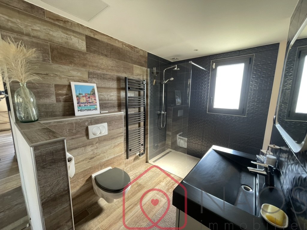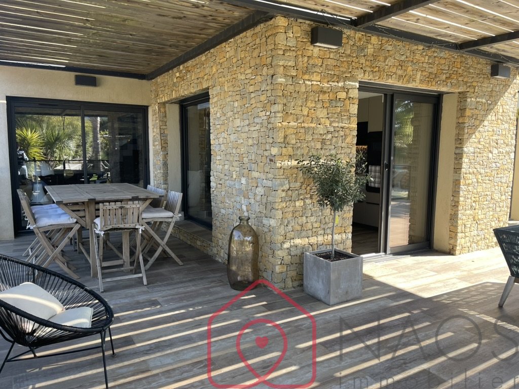 Naos immobilier vous propose dans le quartier très recherché de Janas, cette villa contemporaine d'exception de 170 m2, 6 pièces, 4 chambres. Nichée sur un terrain paysager de 600 m2 avec piscine, à seulement 200 m2 de la magnifique forêt de Janas. Au rez-de-chaussée, découvrez un espace de vie de plus de 50 m2, baignée de lumière menant à un vaste salon cathédrale ouvert sur la cuisine et la piscine dans un esprit loft très sophistiqué. Egalement au rez-de-chaussée 3 belles chambres, une salle d'eau et un WC séparé. A l'étage, une luxueuse suite parentale de plus de 27 m2, vous offre une salle de bain privative, un grand dressing et une terrasse exposé plein sud avec vue dégagée, pour des moments de détente absolue. Un sous-sol aménagé de 40 m2 complète cette villa d'exception, offrant de nombreuses possibilités d'aménagement (home cinéma, salle de sport, cave à vin...) ainsi que des places de parkings extérieures. Prestation haut de gamme, exposition idéale, environnement paisible et verdoyant à proximité immédiate des plages et des commodités...: cette propriété rare, coche toutes les cases pour une qualité de vie incomparable sous le soleil varois. Proche de toutes les commodités et des plages. Une villa coup de coeur à visiter sans tarder. Contactez-nous vite pour organiser une visite ! Réf. 23231 Prix TTC et Honoraires à charge vendeur TTC Les informations sur les risques auxquels ce bien est exposé sont disponibles sur le site Géorisques : www. georisques. gouv. fr Information et visites : Marc TAHAR - 06 11 56 67 11 - Ville du greffe : TOULON 388 958 274