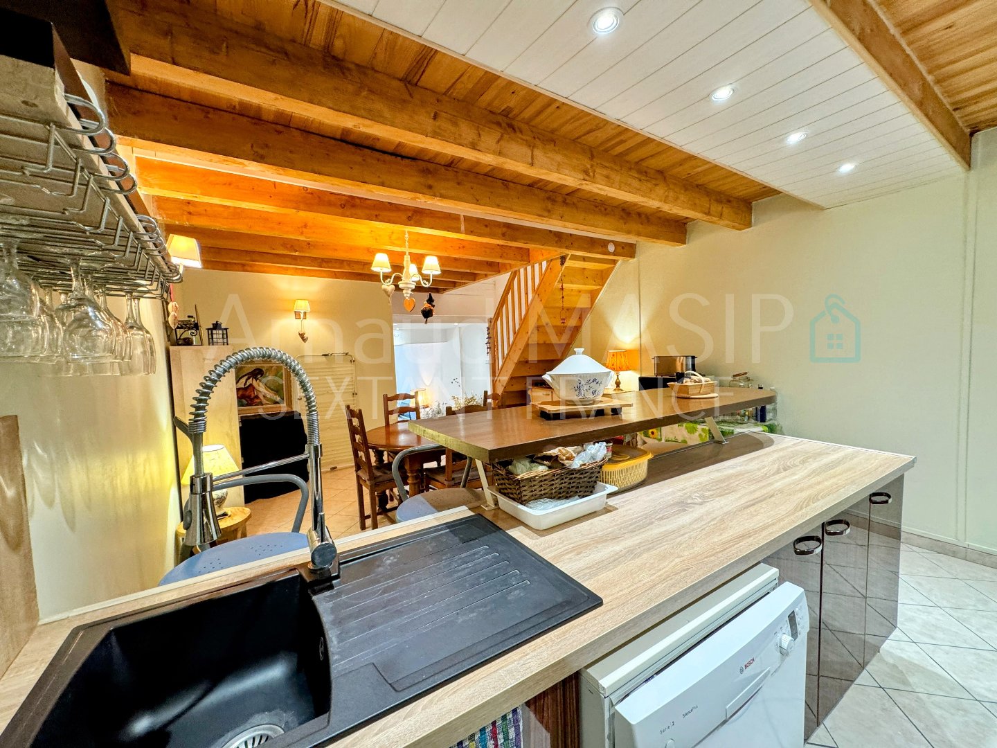 EXCLUSIVITE SEXTANT FRANCE ARNAUD MASIP a le plaisir de vous proposer à la vente cette coquette maison de village de 131 m² habitables environ sur une parcelle de 185 m² (au cadastre), en configuration 2 faces et en RDC + 2 étages, possédant un intéressant devant de porte, composé d'une allée privée pouvant accueillir 2 véhicules, un coin jardinet, une terrasse en dur, mais aussi et surtout, une pièce sous-toiture de type grenier avec pierres et poutres apparentes à aménager selon ses envies...un MUST ! Ayant bénéficié d'une rénovation quasi globale, ce bien offre un extérieur simple d'entretien, mais offrant plus que le nécessaire, à savoir, un espace de stationnement, un coin verdure et le potentiel afin de créer par exemple une cuisine d'été. Côté intérieur, au RDC, une lumineuse pièce de vie, un petit coin rangement, mais aussi une grande cuisine avec coin dinatoire. Le premier étage étant scindé en 2 parties bien distinctes, un accès côté cuisine via un escalier en bois desservant une confortable chambre de type suite parentale, placard encastré, et une superbe salle de bain avec sanitaires, jolie baignoire d'angle et cabine de douche moderne avec buses spa. Le second accès se faisant côté pièce de vie, et proposant au premier, une pièce buanderie fort pratique, une chambre et enfin une salle d'eau avec sanitaires. Pour conclure, au second et dernier étage, une vaste chambre orientée plein sud et offrant une vue sur la nature toute proche, mais aussi et surtout, une pièce de type grenier mêlant les pierres et poutres apparentes, un vaste vélux, une grande fenêtre et un plancher authentique...une superbe pièce versatile que vous n'aurez plus qu'à aménager au gré de vos envies. Une configuration rare en plein cœur de village. La visiter sera l'adopter. Reliée à l'assainissement collectif - tableau et installation électrique aux normes - menuiseries double vitrage - pas de compteur LINKY - plomberie récente - toiture révisée par artisan local - clim réversible dans le séjour - chauffage électrique - impôt foncier 790 € - prévoir isolation sous-toiture NEBIAS - village paisible avec son labyrinthe et café bar situé à 5km de PUIVERT et son lac de plaisance, une école primaire sur place et à 9 km de QUILLAN et ses commerces, pharmacie, maison de santé, écoles, transports, centre culturel, lac, piscine en plein air et animations tout au long de l'année, en plein cœur du Pays Cathare: moins de 2h de 3 aéroports locaux (Carcassonne, Toulouse, Perpignan). Venez savourer la Haute Vallée de l'Aude entre mer Méditerranée et Pyrénées. Les informations sur les risques auxquels ce bien est exposé sont disponibles sur le site Géorisques : www.georisques.gouv.fr VISITE VIRTUELLE DISPONIBLE SUR LE SITE : ARNAUD MASIP SEXTANT FRANCE Sextant France - Arnaud Masip agent basé à AXAT - 06 21 42 13 26 - Plus d'informations sur www.sextantfrance.fr réf. 25592