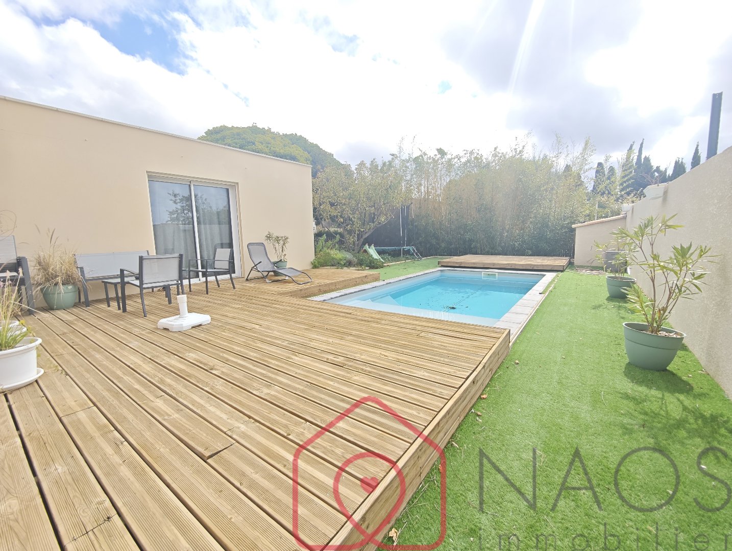 Au pied de la clape, 10 mn de Narbonne, villa rénovée Dpe A, 4 chambres avec placards dont une suite parentale en rez de chaussée, une très belle pièce à vivre avec une cuisine équipée, une salle d'eau, une salle de bain, deux wc, climatisation réversible, chauffe-eau thermodynamique, adoucisseur d'eau, menuiseries double vitrage avec volets roulants électriques et moustiquaires. garage avec portail électrique. A l'extérieur au calme sur 396 m² de terrain clos une piscine au sel avec un system coulissant faisans office de terrasse et de sécurité. Possibilité de rentrer un camping-car dans la propriété. Exclusivité Naos immobilier. Réf. 23686 Prix moyens des énergies indexés sur les années 2021 2022 2023 (abonnement compris). Montant estimé des dépenses annuelles d'énergie pour un usage standard : entre 630 € et 900 € par an. Prix TTC et Honoraires à charge vendeur TTC Les informations sur les risques auxquels ce bien est exposé sont disponibles sur le site Géorisques : www. georisques. gouv. fr Information et visites : Gilles SCHWARTZ - 06 98 03 34 30 - Ville du greffe : AGENT COMMERCIAL EI RSAC BEZIERS 380 215 251 La présente annonce immobilière a été rédigée sous l'entière responsabilité de Gilles SCHWARTZ, mandataire indépendant pour NAOS immobilier