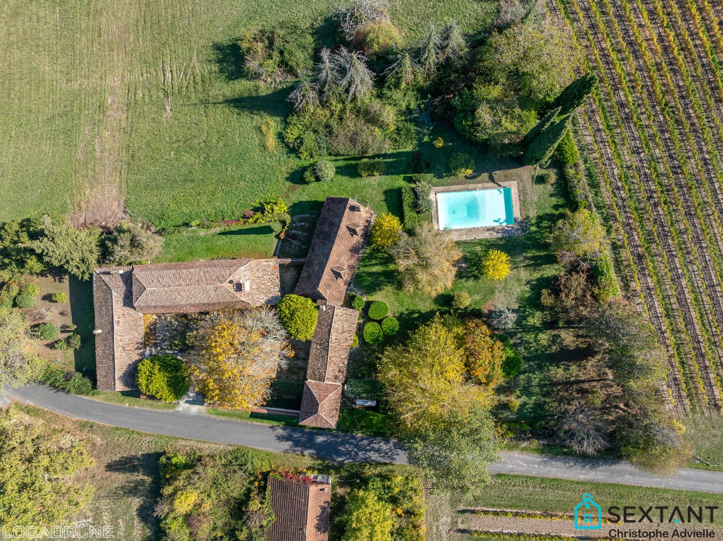 Très bel ensemble architectural du début du XVIII ème siècle offrant une grande harmonie. La chartreuse permet une vie de plain pied, son exposition Est Ouest la rend très agréable tout au long de la journée.On trouve 2 grandes chambres et une belle salle de bains de plain pied. Elle communique avec un grand chai qui pourrait être aménagé en pièce de vie supplémentaire donnant sur la cour d'honneur. le grenier de la chartreuse permet d'envisager la création de chambres supplémentaires à l'étage si besoin. Le colombier à l'autre bout de la cour fermée abrite un logement indépendant, idéal pour un jeune ou recevoir des amis en toute indépendance. Une terrasse couverte vous mène vers le grand parc joliment planté agrémenté d'une piscine aux belles dimensions. Juste à côté vous trouverez une périgourdine avec sa très belle pièce de vie exposée plein Sud, elle dispose aussi d'une très belle cheminée en pierres, l'étage offre 2 chambres et une salle de bains. Vous souhaitez acquérir une propriété unique sur le secteur, vous pourrez vivre très confortablement dans la chartreuse et accueillir vos amis dans la périgourdine et le colombier. Des travaux plus ou moins importants seront à prévoir selon votre niveau d'exigence et de l'usage que vous en ferez, résidence principale ou secondaire, mais toute la propriété est parfraitement habitable dès à présent. La disposition des bâtiments permet également d'envisager une activité de location saisonnière sans que cela ne soit gênant pour les propriétaires. 2 ha de prairies en contrebas de la chartreuse vous permettront de voir gambader vos chevaux tout en prenant votre petit déjeuner. Poussez la porte de cette demeure chargée d'histoire, le coup de coeur sera au rendez vous. Honoraires : 5.27 % TTC inclus charge acquéreur (550 000 € hors honoraires) Agent Commercial Sextant France - Christophe Advielle agent basé à CREYSSE - 06 81 30 46 94 - Plus d'informations sur www.sextantfrance.fr réf. 26402