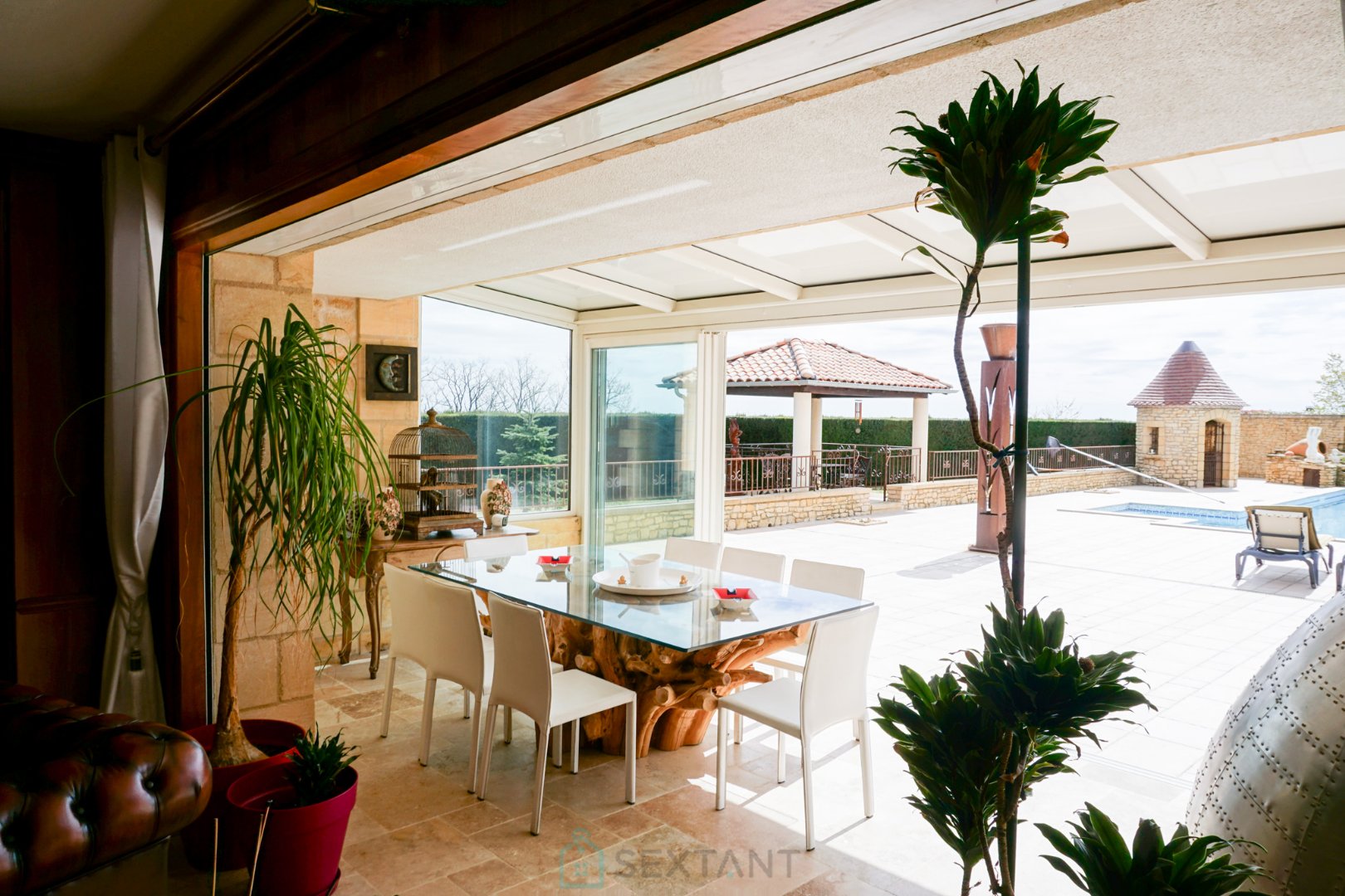 Cette propriété de charme de grand luxe offre un ensemble architectural d'exception comprenant une somptueuse maison d'habitation de 240 m², une maison dédiée à la réception et une élégante villa agrémentée par un bar de standing avec terrasse surplombant la piscine. Deux logements indépendants aménagés bénéficient d'un espace détente avec hammam et sauna qui complètent harmonieusement ce domaine niché dans un parc arboré et fleuri de près d'un hectare. Baignée par une vue imprenable sur la nature luxuriante du Périgord noir, cette propriété se distingue par sa position dominante offrant un panorama remarquable. Conçu pour le bien-être absolu, l'inspiration et l'accueil chaleureux de vos convives, cet ensemble immobilier incarne le lieu idéal où se conjuguent harmonieusement confort et raffinement. Honoraires charge vendeur - Agent commercial Sextant France - Damien Masse - 06 72 80 62 70 - Plus d'informations sur www.sextantfrance.fr réf. 24036